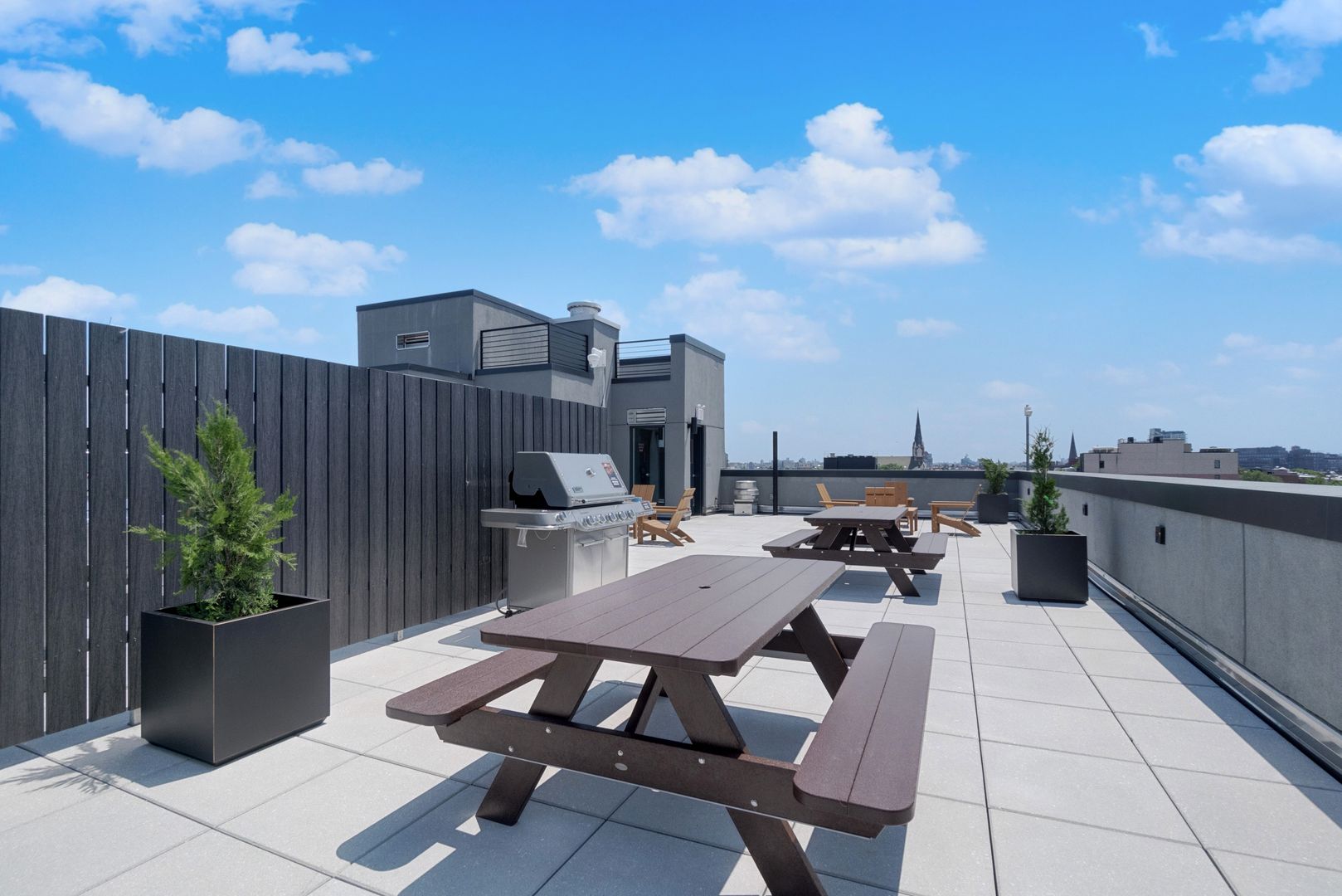 Furnished rooftop with grill and lounge areas